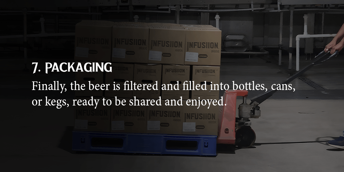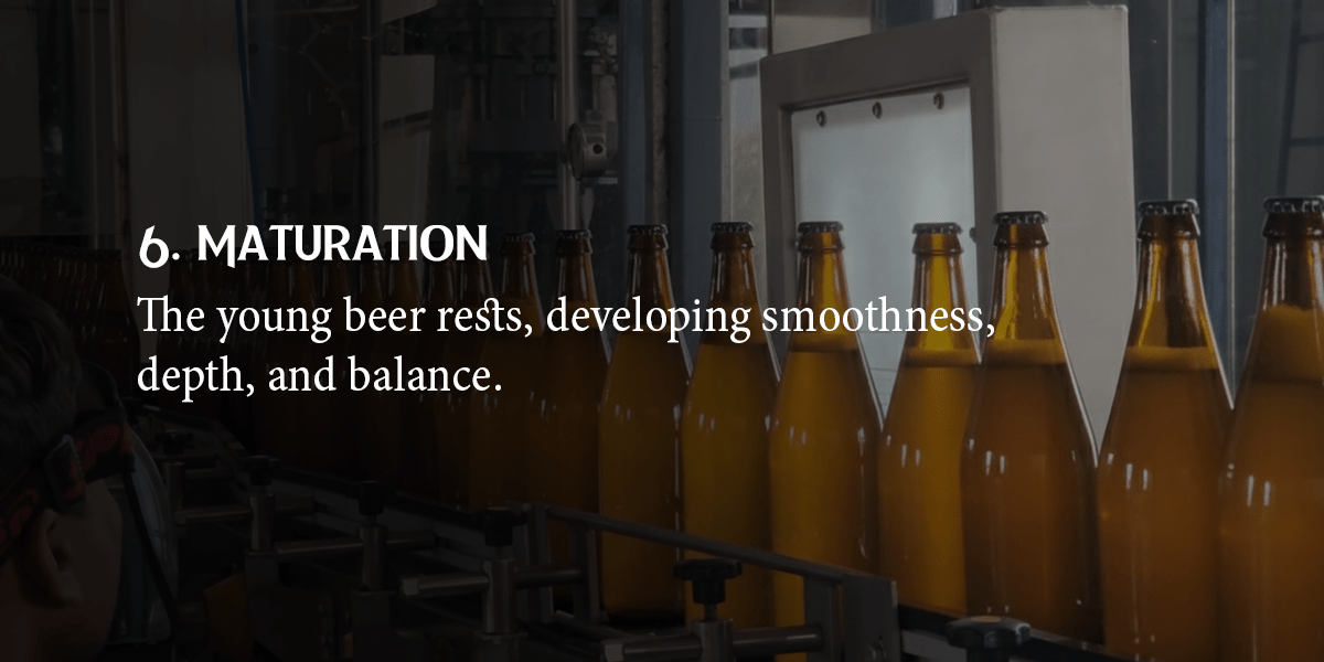 Fermentation follows, as yeast transforms the wort into beer while producing alcohol, carbon dioxide, and complex flavors. Next, we allow the beer to mature while we refine and enhance its flavor. We then filter and bottle the beer to ensure clarity and freshness before it reaches your glass.