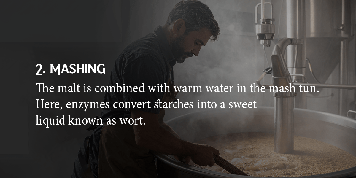 The journey begins with malting, where we soak, germinate, and dry the grains to release their natural sugars.During mashing, we crush the grains and mix them with hot water to convert starches into fermentable sugars. This process creates a thick, sweet liquid called wort, which we boil and hop to shape the beer’s character.
